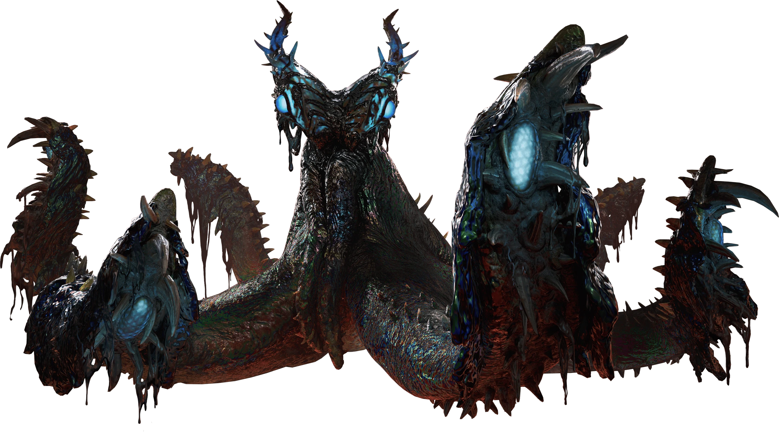 For quite a while, the apex of the Oilwell Basin was exclusively known as "The Black Flame", but its true identity has been revealed. It's a beautiful looking creature, and I also love the concept of an octopus which uses crude oil in place of ink, as well as its tendency to use its siphon as a flamethrower. It's part of an entirely new monster category, simply known as "Cephalopod". While I love all of the current apexes, Nu Udra is currently my favorite.